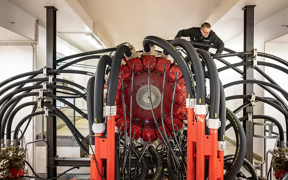 启动完成后,绞车通过回位钢索反向运转,将发射架复位至起点位置,蓄能器随即开始重新充压。“液压系统承受着极端负荷,旺季时两班发车间隔仅有两分钟,"伯克解释道。这种压力骤变通常会导致液压油起泡,为此园区采用了特种液压液、添加剂及一个7,000升容量的储油罐。“我们还对液压油进行强制冷却,否则在高压大流量工况下油温会急剧升高,"伯克补充道。